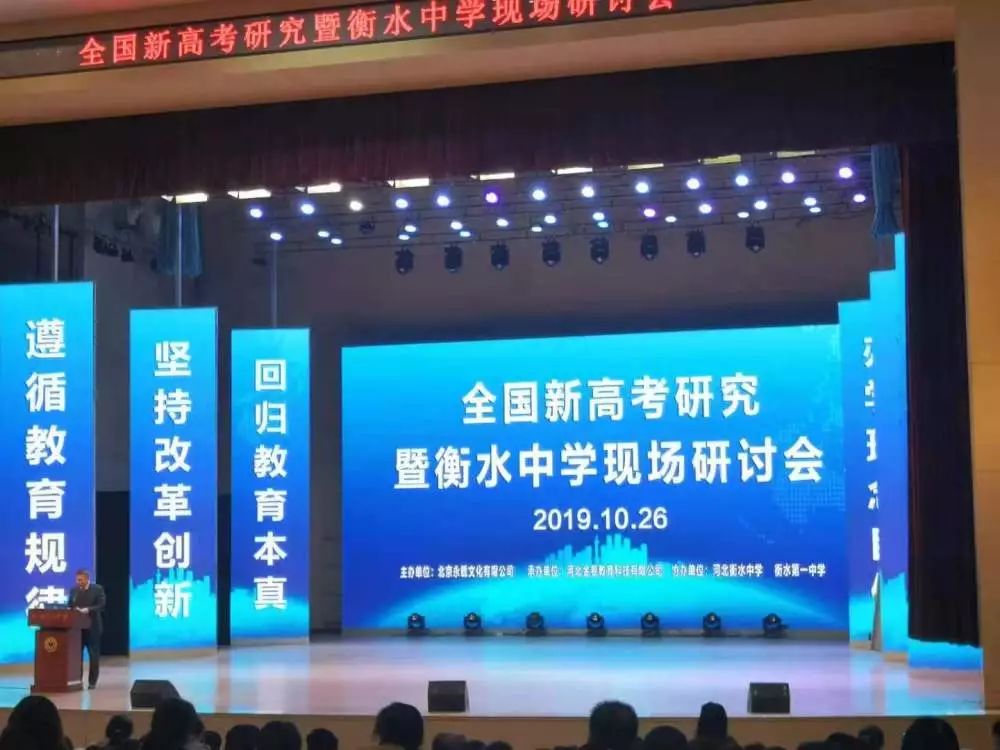 最后,我們聆聽了河北衡水中學(xué)副校長康新江有關(guān)《衡水新高考實施策略的報告》,他在報告中提出,新課改是挑戰(zhàn)與機(jī)遇并存的契機(jī),對衡水中學(xué)來說是學(xué)校發(fā)展良好的動力,他認(rèn)為,衡中的優(yōu)勢在先進(jìn)的辦學(xué)理念,嚴(yán)格的管理制度。他深信衡水學(xué)子在“大五觀”的引領(lǐng)下,定能在2020年的高考中勇奪桂冠,再創(chuàng)佳績。
