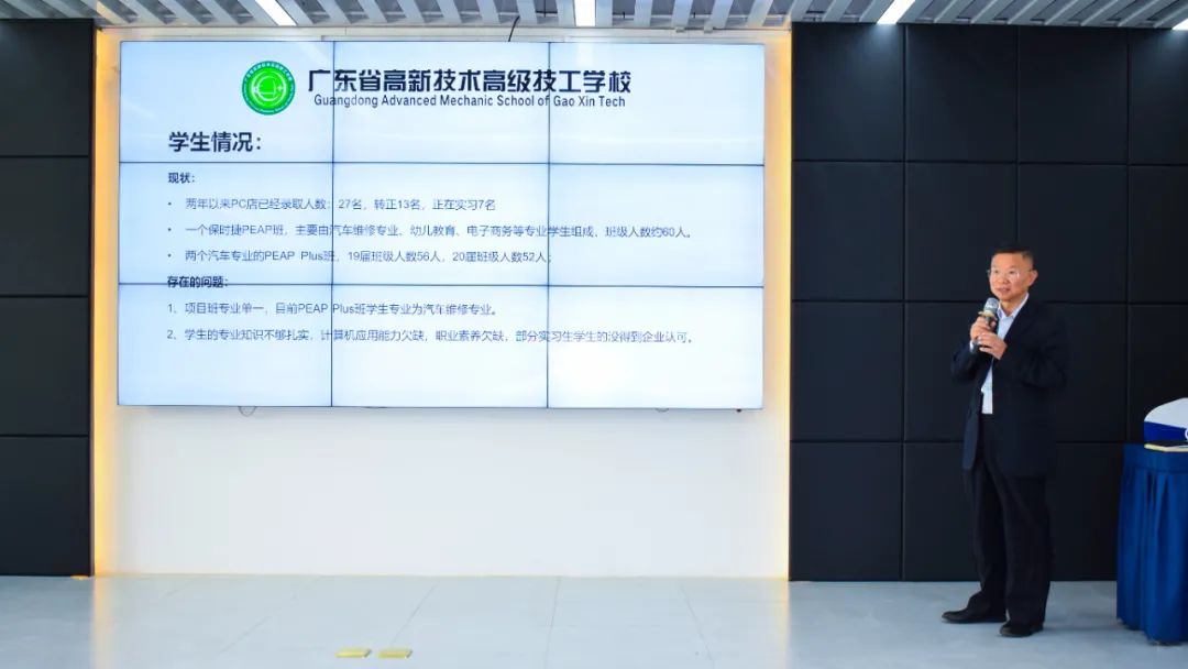 PEAP項(xiàng)目廣東高新負(fù)責(zé)人王則如老師從學(xué)生培養(yǎng)、教師隊(duì)伍、實(shí)訓(xùn)建設(shè)、項(xiàng)目管理評(píng)估等方面,作出項(xiàng)目匯報(bào):