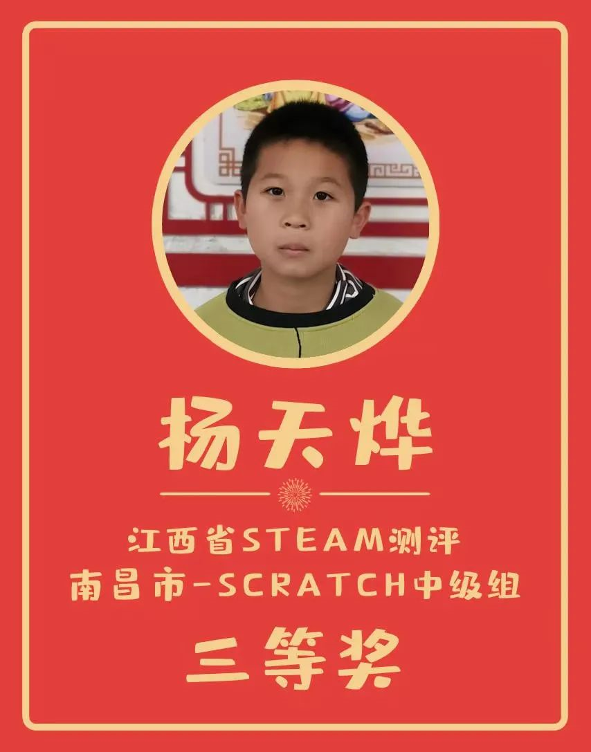 通過以賽促學,以賽促教的方式,孩子們參加了由藍橋杯大賽組委會與美國普林斯頓多文化教育研究中心合作推出的青少年編程比賽(江西省STEAM測評-南昌市-Scratch初級組和中級組),并取得優異成績,有7人獲獎并成功進入省決賽,期待孩子們下一輪更深入的切磋交流。